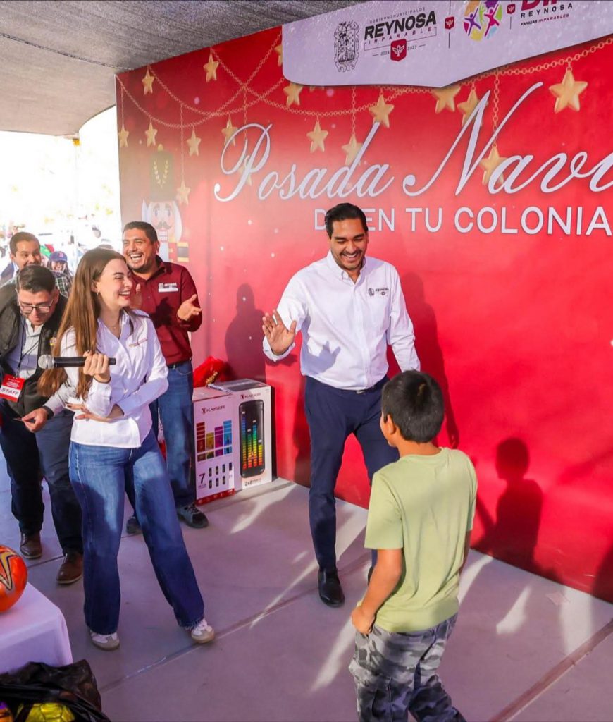 Más de Mil 300 familias, disfrutaron de la tradicional Posada Navideña DIF 2025 en la colonia Loma Real, la cual fue presidida por el Alcalde, Carlos Peña Ortiz y su esposa Alejandra Yelitza Garza, Presidenta del Voluntariado DIF-Reynosa, y el Presidente del Patronato del organismo, Carlos Luis Peña Garza.