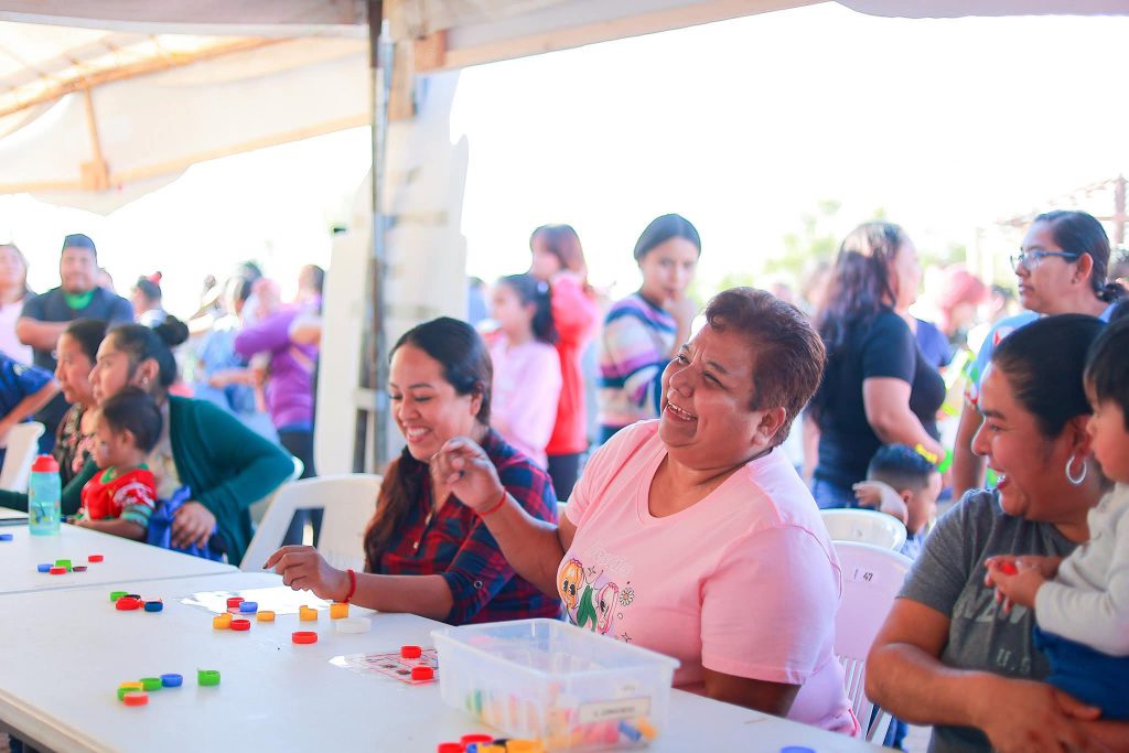 Las madres y padres de familia, se llevaron pavos, nochebuenas y piñatas en el sorteo de regalos y la lotería de valores.