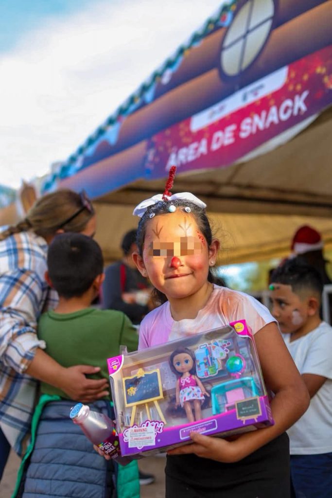 Chicos y grandes pudieron tomarse la Foto con Santa, los más chicos participaron en el área de dibujo, pinta caritas, peinado loco, decorando cupcake, manualidades navideñas, trenecito, toro mecánico, bungee infantil, juguetes, dulces y snack, además de disfrutar el show de payasos.