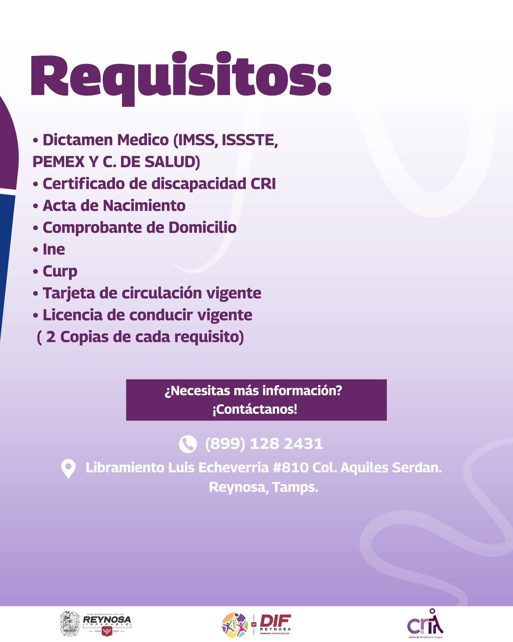 El Sistema DIF Reynosa que preside Carlos Luis Peña Garza, ofrece el trámite del tarjetón de discapacidad, el cual permite identificar a los vehículos que trasladan a personas con discapacidad y facilita el uso adecuado de los cajones especiales destinados para su movilidad.