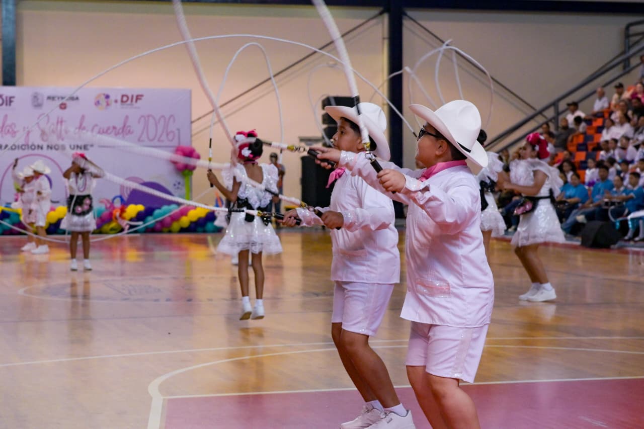 En el Concurso de Rondas Infantiles y Salto de Cuerda 2026, la Escuela Primaria “Narciso Mendoza”, obtuvo el Primer Lugar en la categoría de Rondas Infantiles, mientras que el Instituto Minita destacó al lograr el Primer Lugar en Salto de Cuerda en las modalidades Individual, en Pareja y en Conjunto, con estos resultados, avanzan a la etapa regional, donde representarán a Reynosa.